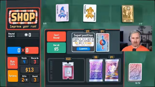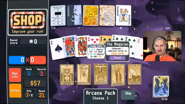 00:21:32Während des Spiels trifft der Streamer verschiedene strategische Entscheidungen. Er diskutiert über die Wichtigkeit von Eco und erklärt, dass dieser Joker entscheidend für hohe Scores ist. Er erzählt über seine Erfahrungen mit verschiedenen Builds und die Notwendigkeit, Base Mult und X Mult zu verstehen. Er zeigt auch, wie er mit verschiedenen Handkarten umgeht, um Punkte zu machen.