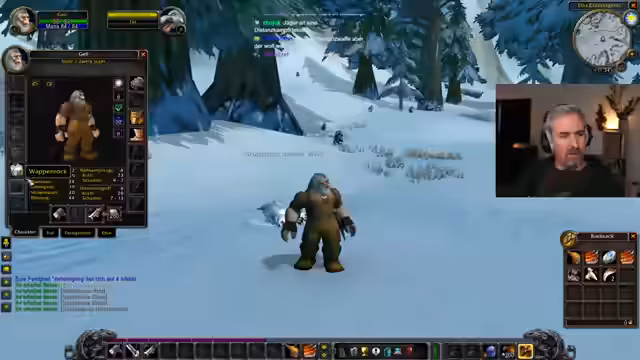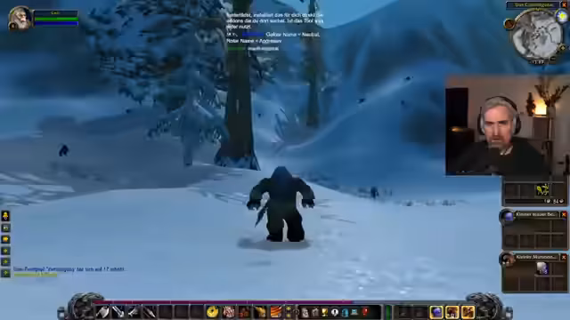 01:35:00Der Streamer beginnt mit der Jagd auf zwölf kleine Klippen-Eber. Er bemerkt, dass die Eber stärker sind als die Wölfe, aber mehr Erfahrungspunkte geben. Er entdeckt, dass er sich automatisch heilt und seine Lebenspunkte gestiegen sind. Er versucht, ein Schild anzulegen, stellt aber fest, dass er es noch nicht benutzen kann. Er experimentiert mit seiner "Donnerbüchse" und findet heraus, dass er aus der Ferne schießen kann, was ihm einen Vorteil verschafft. Er ist stolz darauf, dass er bereits eine Tasche gefunden hat, was ihm laut Chat "Streamer-Glück" beschert hat. Er lernt, die Reichweite seiner Waffe zu nutzen, um Gegner zu besiegen, bevor sie ihn erreichen. Er bemerkt, dass er gelevelt hat und nun Level 2 ist. Er fragt sich, ob andere Spieler die gleichen Erfahrungen gemacht haben wie er, da er das Spiel zum ersten Mal erlebt. Er genießt diese "erste Erfahrung", die man nicht wiederholen kann. Er bemerkt, dass er im Kampf nicht heilen kann und muss den Kampfmodus verlassen, um Heiltränke zu benutzen. Er findet einen Munitionsbeutel, der sein Distanz-Angriffstempo um 10% erhöht, und legt ihn an. Er experimentiert mit seiner Ausrüstung und stellt fest, dass er einen leichten Kettenumhang anlegen kann. Er ist süchtig nach kritischen Treffern und möchte Fähigkeiten erlernen, die ihm mehr Crits ermöglichen. Nach dem Töten von 14 Trollwelpen der Frostmahne ist sein Inventar voll, und er muss sich mit der Inventarverwaltung beschäftigen. Er findet einen Händler, um seine Gegenstände zu verkaufen, und lernt, dass er nicht alle Gegenstände tragen kann, da sie klassenspezifisch sind. Er nutzt einen Ruhestein, um zum Startgebiet zurückzukehren.
