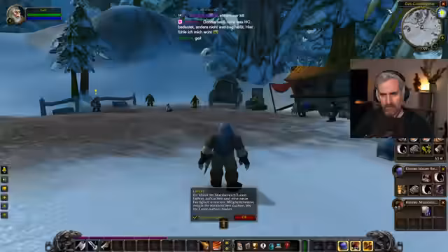 01:11:13Nachdem der Streamer die Handschuhe abgeholt hat, steht er vor der Wahl einer Belohnung. Er entscheidet sich für Handschuhe mit +38 Rüstung, obwohl er sie aufgrund seines aktuellen Levels noch nicht tragen kann, in der Hoffnung, dass sie später nützlich sein werden. Er bemerkt, dass er um 12 Uhr mittags mit 1500 Zuschauern streamt, was ihn überrascht und freut, da er in dieser entspannten Atmosphäre eine andere Seite von sich zeigen kann. Die nächste Quest führt ihn zu Torgas Grimson, einem Jägerlehrer in Anvilmar, über dem Coldridge-Tal. Er hat Schwierigkeiten, sich die Namen und Orte zu merken, da viele Informationen auf einmal auf ihn einprasseln. Er ist Teil eines Streamer-Events und versucht, das Spiel in Ruhe zu lernen, ohne den "Hardcore-Modus" zu aktivieren. Er liest eine geätzte Rune, die ihm den Weg des Jägers erklärt und ihn zu Torgas Grimson führt, um weitere Fähigkeiten zu erlernen. Die Schriftart im Spiel missfällt ihm, da sie schwer zu lesen ist. Er findet Torgas Grimson in Anvilmar und erfährt, dass der Jägerweg Mut und Scharfsinn erfordert und dass er die Welt und ihre Wildtiere respektieren muss. Torgas Grimson wird ihm helfen, aber die meiste Arbeit muss er alleine leisten.