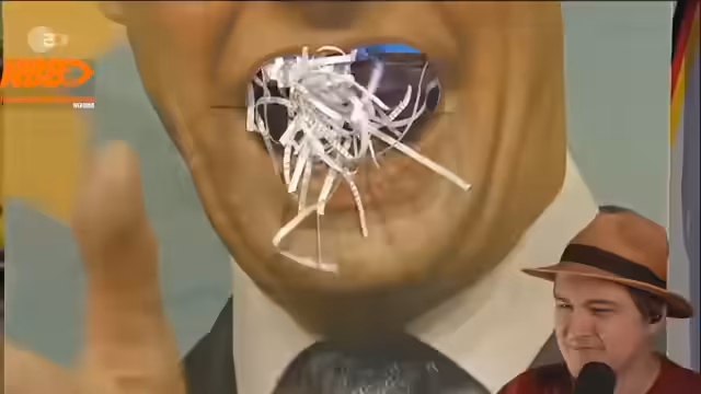 02:41:16Ein surrealer satirischer Dialog wird inszeniert, bei dem der Streamer Friedrich Merz und ein Bürokratie-Monster gegenüberstehen. Merz verkündet den „Paragrafen-Töter“ und will Deutschland von Bürokratie befreien. Das Monster widerlegt dies, indem es auf die Absurdität von Bürokratie-Abbaugesetzen wie „One-in, two-out“ hinweist, die oft zu mehr Regulierungen führen. Der Dialog thematisiert auch die unmögliche bürokratische Lage von Staatenlosen in Deutschland und deren existenzielle Probleme.