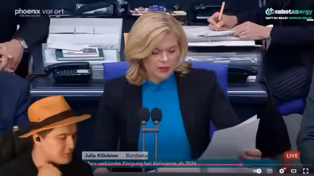 00:26:22Alice Weidel eröffnete die Generaldebatte im Bundestag mit scharfen Angriffen auf Bundeskanzler Merz und die Regierung. Sie warf ihm Selbstgefälligkeit und linksgrüne Realitätsverweigerung vor. Weidel kritisierte, dass Merz sich nicht zum Tod von Charlie Kirk geäußert habe, und bezeichnete ihn als Verteidiger der freien Rede. Sie warf der AfD vor, andere Leute aus dem Land werfen zu wollen und projizierte das auf andere. Sie behauptete, die linksterroristische Antifa würde Schädel und Gelenke zertrümmern. Weidel griff die GEZ-Zwangsfinanzierung an und unterstellte Inkompetenz, da die AfD nicht wisse, dass die GEZ in dieser Form nicht existiere. Sie warf Merz vor, im linksgrünen Lager um Unterstützung für Richterwahlen und Verfassungsmanipulation zu betteln. Sie behauptete, dass die rechtsextreme Gewalt gestiegen sei, während die linksextreme Gewalt gleich geblieben sei. Sie forderte die Schließung der Grenzen, die Zurückweisung von illegalen Einreisenden, den Stopp des Familiennachzugs und die konsequente Abschiebung von straffälligen Ausländern. Sie sprach sich gegen Sozialleistungen für Asylbewerber und Flüchtlinge aus und forderte Sachleistungen statt Geldleistungen. Sie kritisierte die Migrationspolitik der Regierung und warf ihr vor, Wahlversprechen gebrochen zu haben. Sie forderte eine Rückkehr zur Kernkraft, die Abschaffung des Heizungsgesetzes und des Verbrennerverbotes. Sie warf der Regierung Rekordverschuldung vor und kritisierte die Stromsteuersenkung. Sie sprach von einer linken Lobby-NGO und kritisierte die Erbschaftssteuer. Sie warf der Regierung vor, die Krise auf die Spitze zu treiben und die grüne Energiepolitik weiter zu betreiben. Sie warnte vor der Abwanderung der produzierenden Industrie und warf Merz vor, sich in die Pose des Weltpolitikers und Kriegsherren zu flüchten. Sie sabotieren die Bestrebungen des US-Präsidenten Donald Trump, den Ukraine-Krieg schnell zu beenden. Sie ermutigen den ukrainischen Machthaber Selenskyj, sich einer schmerzhaften, aber raschen Beendigung des hunderttausendfachen Sterbens zu widersetzen.