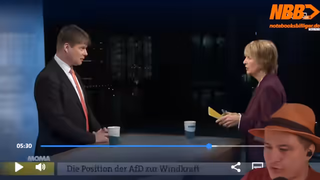 01:37:27Der Streamer nutzt den Beitrag, um sich über wiederholte inkompetente Aussagen des AfD-Energiepolitikers Steffen Kotter lustig zu machen. Insbesondere seine Aussage, dass unter Photovoltaik-Modulen kein Licht durchkomme und Agri-Photovoltaik deshalb unmöglich sei, wird als physikalisch falsch und peinlich entlarvt. Der Streamer zeigt Beispiele wie das Hopfenprojekt in der Hallertau, bei dem unter den Solarmodulen ein besseres Mikroklima und ein höherer Ertrag erzielt werden.