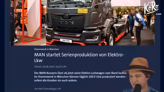 00:49:28Der MAN-Konzern hat die Serienproduktion seiner Elektro-Laster aufgenommen und bezeichnet dies als Wendepunkt in der Firmengeschichte. Die E-Modelle laufen vom selben Band wie die Dieselfahrzeuge, je nach Kundenauftrag werden Tank oder Batterie eingebaut. Zwar gibt es bereits rund 700 Aufträge, doch die hohen Anschaffungskosten von bis zu 300.000 Euro für die Elektroversion – das bis zu Dreifache eines Dieselmodells – sind derzeit noch ein großes Hindernis für die breite Marktdurchsetzung.