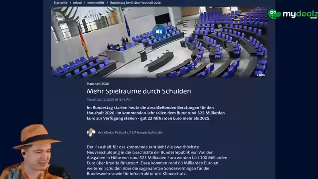 00:21:51Es stehen zahlreiche Nachrichten und Videos zur Diskussion, darunter ein Video über die Epstein-Akten und ein weiteres über Trump. Im Bundestag beginnen heute die abschließenden Beratungen für den Haushalt 2026. Für das kommende Jahr sind rund 525 Milliarden Euro vorgesehen, 22 Milliarden Euro mehr als 2025. Der Haushalt sieht die zweithöchste Neuverschuldung in der Geschichte der Bundesrepublik vor, wobei fast 100 Milliarden Euro über Kredite und weitere 83 Milliarden Euro über Sondervermögen für Bundeswehr, Infrastruktur und Klimaschutz finanziert werden. Kritiker bemängeln, dass der Haushalt unübersichtlich geworden sei und Schulden auch zum Stopfen von Haushaltslöchern genutzt werden. Die Bundesregierung spricht von einer Investitionsoffensive, obwohl der Bedarf, beispielsweise bei Straßen und Schienen, viel größer ist. Sozialausgaben steigen, ein Drittel des gesamten Bundeshaushalts fließt in den Etat von Arbeits- und Sozialministerin Bärbel Bas, hauptsächlich als Zuschuss für die Rentenversicherung. Auch die Kosten für Zinszahlungen steigen auf 34 Milliarden Euro. Der Streamer äußert sich besorgt über die Kreditpolitik und die mangelnden Investitionen in wichtige Bereiche wie Digitalisierung, die Deutschland dringend benötige.