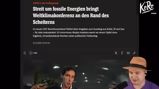 00:24:16Die Weltklimakonferenz steht laut Streamer am Rand des Scheiterns, da es bei den Verhandlungen um den Ausstieg aus fossilen Energien zu schweren Konflikten kommt. Im vorläufigen Abschlussentwurf fehlen klare Vorgaben zum Ausstieg aus Kohle, Öl und Gas, was für viele Länder unannehmbar ist. Ölförderländer wie Russland, Indien und Saudi-Arabien sowie viele Schwellenländer blockieren die Vereinbarungen, während Entwicklungsländer unzufriednen mit der Formulierung zur Klimafinanzierung sind. Laut Streamer ist es absurd, dass sich eine globale Klimakonferenz nicht darauf einigen kann, den Ausstieg aus fossilen Brennstoffen zu fordern.