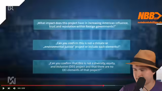 03:43:59Die Trump-Administration verschickt bereits Fragebögen an europäische Universitäten. Die TU München erwartet solche Anfragen und ist unbehaglich, da es um die politische Genehmigung von gemeinsamen Forschungsprojekten geht. Konkret wird gefragt, ob Projekte keine 'Klima- oder Umweltgerechtigkeitsaspekte' und keine 'DEI-Diversity, Equality, Inclusion-Elemente' enthalten dürfen. Die Wissenschaftler sehen darin eine Einschränkung der Forschungsfreiheit und eine Einmischung, die die Attraktivität Europas für Talente erhöht.