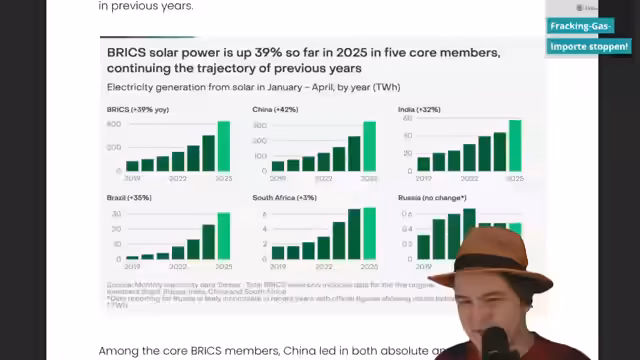 00:22:52Ein zentraler Punkt ist der SWR-Bericht über die eine Million installierten Balkonkraftwerke in Deutschland, wobei die Verteilung auf die Bundesländer thematisiert wird. Schleswig-Holstein führt pro Einwohner, während es bei anderen Bundesländern, wie Hamburg und Bremen, noch Potenzial gibt. International wird Chinas explosionsartiger Ausbau von Solarenergie hervorgehoben, der innerhalb weniger Monate die deutsche Gesamt-Kapazität erreichte und als positives Signal für die globale Energiewende bewertet wird, auch wenn China weiterhin viel Kohle verstromt.