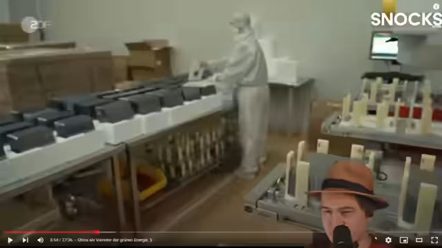 01:00:04Ein fokussiertes Video zeigt Chinas führende Rolle im Ausbau erneuerbarer Energien. Allein im vergangenen Jahr baute China mehr Wind- und Solarkraftanlagen als der Rest der Welt zusammen. Aktuell wird dort alle zehn Minuten eine Windturbine installiert und pro Sekunde 100 Solarzellen produziert. Dieser massive staatlich geförderte Ausbau wird als strategischer Vorteil für die chinesische Wirtschaft betrachtet, der dessen gesamtes Bruttoinlandsprodukt übertreffen könnte. Gleichzeitig wird kritisch angemerkt, dass China trotz dieser Fortschritte weiterhin massiv Kohle zur Deckung seines Energiebedarfs einsetzt.
