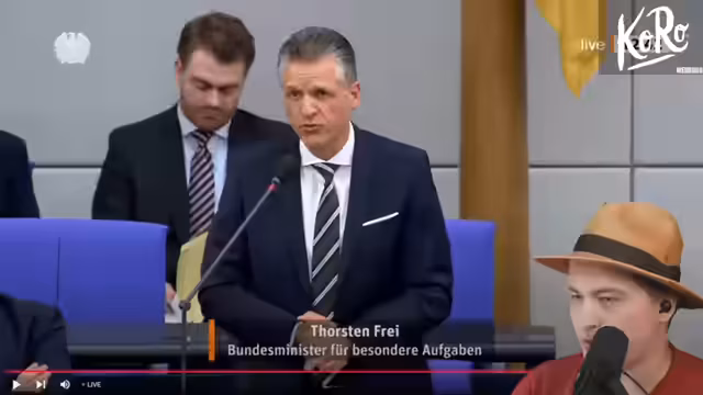 02:39:39Der Streamer analysiert mögliche Erfolge der neuen schwarz-roten Regierung. Die vorherige Ampel-Regierung hatte Erfolge, aber die FDP habe eher auf die Grünen eingeschlagen als die Erfolge zu vermarkten. Der Streamer erwartet, dass die neue Regierung ihre Erfolge vermarkten muss, um nicht ähnlich scheitern zu können. Er kritisiert auch die übertriebene Dramatisierung der Lage mit der Behauptung, es sei die 'letzte Patrone im Gurt der Demokratie'.