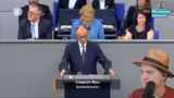 04:46:23Bundeskanzler Friedrich Merz beginnt seine Regierungserklärung mit dem Thema 'Verantwortung für Deutschland'. Er betont die Notwendigkeit, Deutschland mit neuen Konzepten voranzubringen, die Sicherheit, Wohlstand und Zusammenhalt in der Gesellschaft fördern sollen. Merz erkennt die Herausforderungen an, die das Land betrifft, zeigt sich aber zugleich optimistisch, dass Deutschland sich aus eigener Kraft weiterentwickeln kann.