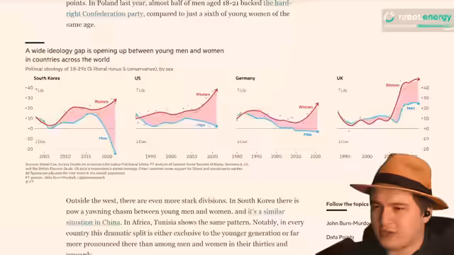 04:17:17Es wird eine Diskussion über Geschlechterdynamiken in sozialen Medien geführt, insbesondere darüber, wie Männer vorgeben, links zu sein, um Frauen anzuziehen. Dieses Phänomen wird als „crazy“ und „krank“ beschrieben, wobei der Kontext einer spezifischen Storyline fehlt. Es wird auf Studien verwiesen, die globale Geschlechter-Dividing aufzeigen, wonach Männer eher zu konservativen und Frauen zu liberalen Spektren tendieren, besonders hervorgehoben am Beispiel Südkoreas. Dort wird Feminismus für viele gesellschaftliche Probleme verantwortlich gemacht, was zu Bewegungen wie der 4B-Bewegung führt, die sich weigert, Kinder zu bekommen. Dies wird als Reaktion auf die Weigerung von Frauen interpretiert, bestimmte männliche Verhaltensweisen zu tolerieren und auf die statistisch höhere Belastung von Frauen durch konservative Lebensstile. Die Tendenz wird als sehr interessant, aber auch als problematisch und wild bezeichnet, insbesondere in Bezug auf die fehlenden Langzeitdaten in Südkorea.