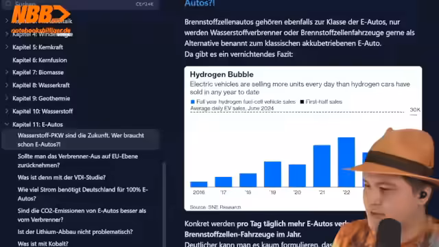 01:10:51Der Streamer thematisiert das häufig gen Argument, negative Strompreise in Deutschland seien ein Zeichen für das Scheitern der Energiewende. Er widerlegt dies, indem er auf Beispiele wie Finnland und Schwesen verweist, die ebenfalls hohe Anteile an Kernkraft haben, aber noch mehr negative Preisstunden aufweisen. Er erklärt, dass negative Preise ein physikalisches Problem bei Überangebot sind, das durch den Ausbau von Akkuspeichern und Netzen gelöst werden muss, und nicht ein grundsätzliches Problem der Energieträger.