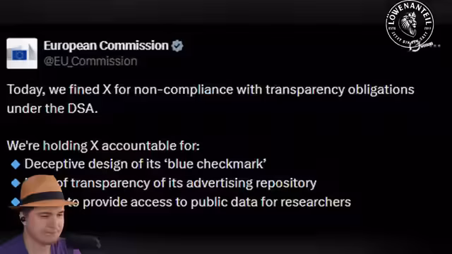 01:06:40Der Streamer greift Elon Musk und dessen "peinlichen EU-Meltdown" auf. Nach einer 120-Millionen-Euro-Strafe der EU-Kommission für X wegen Betrug durch Käufliche Verifizierungen und mangelnder Werbetransparenz, reagierte Musk mit der Forderung, die EU aufzulösen. Er beschränkte anschließend den Account der Europäischen Union auf X. Der Streamer widerlegt Musks Behauptung, X sei die beliebteste News-Plattform, mit Fakten aus App-Store-Charts und sieht im Digital Services Act (DSA) einen notwendigen Schraubenschlüssel gegen die Macht von Tech-Milliardären.