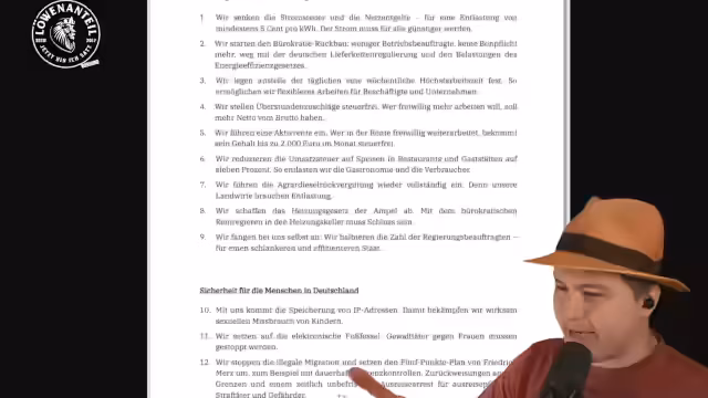 00:30:23Der Streamer analysiert die Entwicklung der Energiewende in der EU, die zwar eine gute Richtung einschlägt, aber durch das Abschalten von fossilen Kraftwerken Reserven verliert. Er lobt Polen für den starken Rückgang des Kohleanteils und Dänemark für weitreichende Elektrifizierung, wo der Windkraft-Ausbau an Grenzen stößt. Anschließend geht er auf den Sofortplan der CDU ein. Er kritisiert Forderungen wie Abschaffung des Heizungsgesetzes, die inhaltlich widersprüchlich sind, sowie Maßnahmen wie IP-Adressenspeicherung, die bereits mehrfach von Gerichten kassiert wurden.