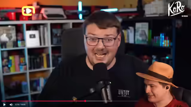 04:34:11Es wird Werbung für den Partner Koro gemacht, insbesondere für beruhigende Teesorten. Der Link zum Shop wird im Chat geteilt, und mit dem Code "Trak" kann man Geld sparen. Der Chai-Tee ist jedoch ausverkauft, was ungünstig ist. Trotzdem gibt es viele andere Produkte bei Koro. Es gibt Probleme beim Laden der Bilder auf der Seite, und die Internetverbindung ist schlecht. Es wird festgestellt, dass ein aktiviertes VPN, das für das Ansehen von Serien aus anderen Ländern verwendet wurde, die Ursache für die schlechte Internetverbindung ist. Es wird auf die große Auswahl an Produkten bei Koro hingewiesen, wie Mandelmus, Haferflocken und Dinkelprodukte für Müsli. Es wird empfohlen, nicht zu viele Haferkekse oder Schokobrezelkugeln zu kaufen, da man sonst mehr auf dem Laufband laufen muss. Die Streamerin zeigt kurz ihr Steam-Setup im Hintergrund und scherzt über ein brennendes Haus im Hintergrund. Es wird angedeutet, dass der Kanal stirbt, und die Schuld wird auf Querdenker oder den Brötus Nachrichtendienst geschoben.