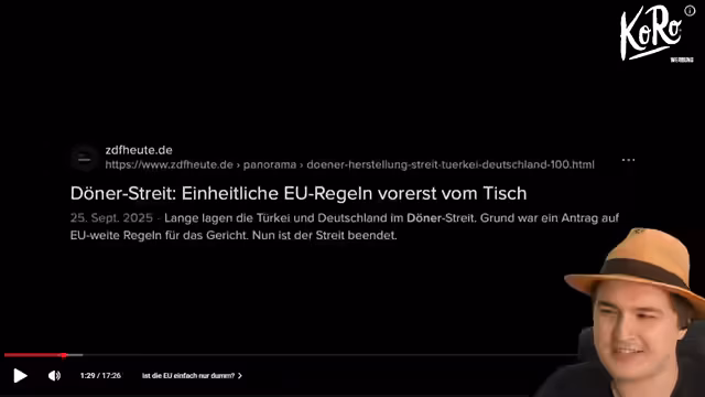 05:13:02Die Diskussion um die Umbenennung von Fleischersatzprodukten wie „Veggie-Burger“ aufgrund angeblichen Verwechslungsrisikos wird als absurd und heuchlerisch kritisiert. Es wird argumentiert, dass Verbraucher, die auf einer Packung nicht erkennen können, ob ein Produkt vegan ist, keine Regulierung, sondern Betreuung bräuchten. Die Logos und Kennzeichnungen auf veganen Produkten seien ausreichend. Ebenso wird die Sinnhaftigkeit von EU-Debatten über die Zubereitung von Dönern oder die Krümmung von Gurken infrage gestellt, während „echte Probleme“ ungelöst bleiben. Es wird jedoch auch darauf hingewiesen, dass viele scheinbar unsinnige Vorschriften, wie die Richtlinie für tragbare Leitern, oft auf Haftungsfragen und reale Vorfälle zurückzuführen sind. Die EU hat auch positive Errungenschaften, wie die Einführung von USB-C für iPhones und die Abschaffung der Roaming-Gebühren, die als sinnvoll und vorteilhaft für die Bürger hervorgehoben werden.