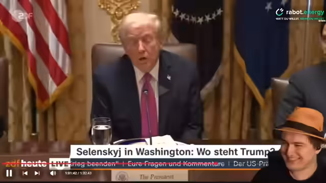 01:26:27Das Gespräch zwischen Donald Trump und Wolodymyr Selenskyj wird als „desaströs“ bezeichnet, wobei Trump sich auf die Beendigung des Krieges konzentriert und Selenskyj sich für die Unterstützung bedankt. Selenskyj gratuliert Trump zu seinen Erfolgen im Nahen Osten und äußert die Zuversicht, dass mit Trumps Unterstützung der russische Krieg gestoppt werden kann, da Russland derzeit keine Erfolge auf dem Gefechtsfeld erzielt. Dies wird durch die zunehmende Wut pro-russischer Militärblogger bestätigt, die die wachsenden Probleme Russlands, wie gescheiterte mechanisierte Angriffe und tägliche Angriffe auf russische Infrastruktur, hervorheben. Die Ukraine greift vermehrt Umspannwerke und Öldepots an, wobei sie sogar Bildaufnahmen veröffentlichen konnte, die zeigen, wie präzise sie Ziele identifizieren und angreifen können. Die Diskussion kritisiert auch die „halb gare“ Hilfe der NATO-Mitglieder an die Ukraine, die als nicht ausreichend angesehen wird, um Russland effektiv zurückzuschlagen. Trumps Fokus auf Selenskyjs Jackett während des Gesprächs wird als unangemessen und ablenkend von wichtigeren Themen empfunden.