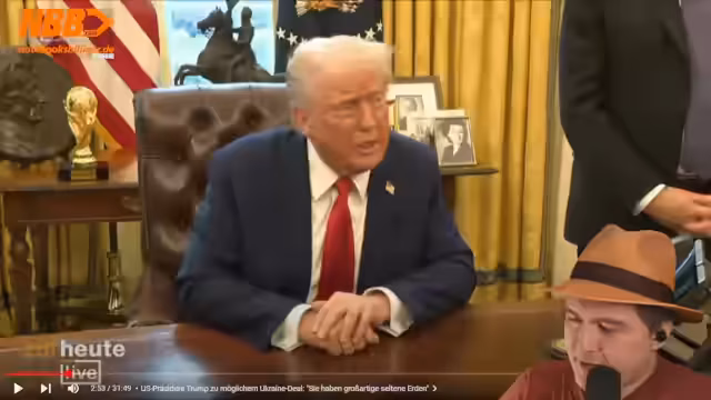 01:14:16Die aktuelle Lage der Ukraine wird vorgestellt. An fast allen Fronten ist Russland auf dem Vormarsch, allerdings mit hohen Verlusten. In der Region Toretsk und um Pokrovsk finden heftige Panzergefechte und Häuserkämpfe statt. Das ZDF berichtet über die Ankündigung von US-Präsident Trump, künftig für Militärhilfen an die Ukraine Gegenleistungen in Form von Rohstoffen zu erwarten, insbesondere seltene Erden. Der Streamer betont, dass der ukrainische Präsident Selenskyj diese Strategie bereits in seinem eigenen Friedensplan vorgeschlagen habe, um Druck aufzubauen.