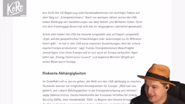 00:18:48Der Stream beginnt mit einer Begrüßung und dem Hinweis, dass die Stimme noch nicht ganz da ist. Es wird ein Überblick über die geplanten Themen gegeben, darunter ein Video von Frontal über die "schmutzigen Geheimnisse der E-Autos", das kritisch betrachtet wird. Um 11 Uhr soll es einen bundesweiten Warntag geben, weshalb das Handy vorsorglich weggepackt wurde. Es wird erwähnt, dass nicht über bestimmte Mordanschläge oder Amokläufe gesprochen wird, da dies nicht als sinnvoll erachtet wird und eine vergiftete Debatte befürchtet wird. Stattdessen sollen andere Themen behandelt werden, darunter die Energiepolitik der USA und die Situation in der Ukraine. Es wird kurz auf die USA eingegangen, wo Trump versucht, den Energieexport zu forcieren und Druck auf die EU auszuüben, amerikanisches Gas zu kaufen. Dies wird als problematisch angesehen, da es wirtschaftlich nicht sinnvoll und physikalisch kaum umsetzbar sei. Stattdessen sollte die EU in Elektrifizierung und regenerative Energien investieren, wie es China vormacht. Abschließend wird kurz auf ein Urteil des EU-Gerichts eingegangen, das die Schädlichkeit von Atomkraft oder Gas nicht kommentiert, sondern lediglich feststellt, dass die EU solche Standards festlegen darf.