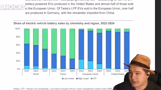 01:55:28Der Streamer kritisiert einen Beitrag, der den Nickelbedarf der Autoindustrie irreführend darstellt. Er bemängelt, dass alte Aufnahmen verwendet werden und er fälschlicherweise als jemand dargestellt wird, der Elon Musk verteidigt. Der Beitrag suggeriert, dass Autohersteller nicht um den größten Nickelexporteur Indonesien herumkommen, obwohl China, der mit Abstand größte E-Auto-Markt, zu fast 80 Prozent LFP-Batterien verbaut. Der Streamer bezeichnet den Beitrag als wertlosen Abfall und vergleicht ihn mit der Killerspiel-Debatte von Frontal 21. Er betont, dass es eine einfache Alternative zu Nickel gibt, die im Beitrag nicht aufgegriffen wird. Der Streamer weist darauf hin, dass sich die Situation in den letzten fünf Jahren drastisch geändert hat und Tesla mittlerweile eigene LFP-Zellen in den USA fertigt. Er kritisiert, dass der Beitrag diese Entwicklung nicht erwähnt und die Situation als Katastrophe darstellt.