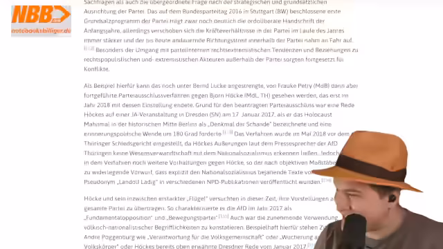 00:30:26Der Streamer zeigt sich überrascht über die spontane Veröffentlichung des Verfassungsschutzgutachtens von 2021 durch Netzpolitik und hat es sich bereits aus Sicherheitsgründen heruntergeladen. Er betont, dass es sich nicht um das neueste, ergänzte Gutachten handelt, sondern dennoch viele interessante Informationen enthält. Das Gutachten wird als relevant für ein mögliches Verbotsverfahren der AfD angesehen und als Argument gegen die Behauptung, es handele sich um manipulierte Informationen oder Fake News. Viele der zitierten Beispiele stammen aus öffentlichen Facebook-Posts und Grundsatzerklärungen. Der Streamer berichtet von Diskussionen auf TikTok, bei denen er sich über Personen lustig machte, die sich der Prozentrechnung verweigerten. Er erklärt, dass er sich die Mühe gemacht hat, mathematische Grundlagen zu erklären, obwohl er weiß, dass viele Bot- und Troll-Accounts unterwegs sind, die nicht überzeugt werden können. Es wird erwähnt, dass der Verfassungsschutz nicht nur öffentlich zugängliche Informationen sammelt, sondern auch über Umwege an Informationen gelangen kann.