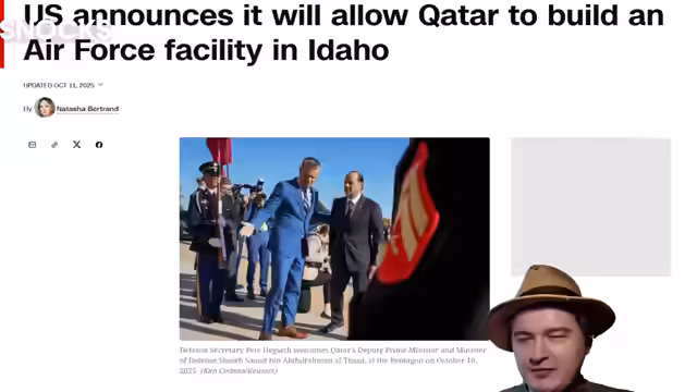 00:39:17In historischer Entscheidung erlaubt den USA Katar den Bau einer Militärbasis in Idaho. Dies löst bei Trump-Anhängern massive Verärgerung aus, da es im Widerspruch zu seinem 'America First'-Prinzip steht. Vermutlich spielt eine Spende von Katar in Form eines Privatjets eine Rolle in dieser Entscheidung, was erneute Korruptionsvorwürfe gegen Trump aufwirft.