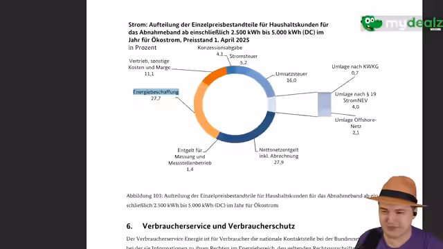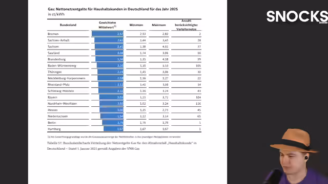 00:19:03Der Stream beginnt mit einer kurzen Einführung und der Ankündigung, einen umfangreichen Report zu überfliegen, der sich als der Energie-Monitoring-Report 2025 herausstellt. Dieser Bericht beleuchtet zahlreiche Kennzahlen und Aspekte des deutschen Energiesystems, darunter Strom- und Gaspreise, Handelsvolumen und Ausfallquoten. Besonders hervorgehoben wird die signifikante Zunahme intelligenter Messsysteme (Smart Meter), deren Anzahl sich von 568.000 auf 1.108.000 fast verdoppelt hat. Trotz dieses Anstiegs wird kritisiert, dass die Verbreitung mit nur etwa zwei bis drei Prozent der über 50 Millionen Zähler in Deutschland noch unzureichend ist, um die gewünschte Automatisierung und Nutzung dynamischer Tarife flächendeckend zu ermöglichen. Die Notwendigkeit einer schnelleren Einführung von Smart Metern, beispielsweise durch vereinfachte Varianten, wird betont, da immer noch 21 Millionen alte elektromechanische Zähler im Einsatz sind. Auch die Netzengelte für Strom werden thematisiert, wobei Hamburg mit den höchsten Preisen besonders negativ auffällt, während andere Regionen deutlich günstiger sind.
