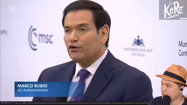 00:30:43Der Streamer beginnt mit der Analyse der Rede von Marco Rubio, dem US-Außenminister. Er hebt hervor, dass Rubio den historischen Kontext der transatlantischen Beziehungen seit dem Kalten Krieg herstellt und dabei den Mauerfall anspricht, was angesichts von Trumps eigener Mauerpolitik als ironisch bewertet wird. Rubio betont die vermeintlichen gemeinsamen Werte und Ziele der Vergangenheit, während der Streamer die Frage aufwirft, ob dies eine realistische Darstellung des aktuellen Standes der Beziehungen ist, die er als deutlich gespannt ansieht.