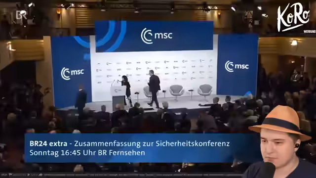00:18:23Der Streamer begrüßt die Zuschauer und kündigt den Fokus auf die Rede der USA auf der Münchner Sicherheitskonferenz an. Er erwähnt, dass die Rede von J.D. Vance aus dem Vorjahr stark rezipiert wurde und nun gespannt auf die neue Äußerung der US-Seite blickt. Ein kurzer technischer Zwischenfall mit dem Timer wird erwähnt, aber der Übergang zum Livestream der Konferenz erfolgt nahtlos. Im Vorfeld streift er auch ein kurzfristiges Ärgernis über unpräzise Kritik an früheren Videos, was er als unwesentlich für die Hauptthematik abtut.