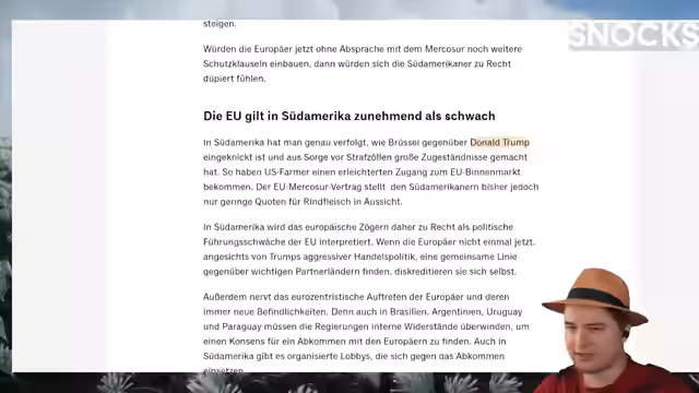 03:22:51Der Streamer überrascht sich über einen neuen US-Vorschlag: Statt einer vollständigen Demilitarisierung entlang der Kontaktlinie soll eine 5600 Quadratkilometer große, rosafarbene Wirtschaftszone im Donbass demilitarisiert werden. Dieser Vorschlag erscheint ihm sinnlos, da Russland sich aus diesem Gebiet ohnehin nicht zurückziehen würde. Die USA fungieren als Vermittler, aber die Details wirken unklar und widersprüchlich zu früheren Positionen.