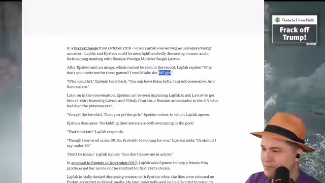 01:04:17Während der Streamer davon ausgeht, dass die Trump-Regierung die Veröffentlichung stoppen will, hofft er auf politischen Druck von Seiten der Demokraten, die sich für die Freilassung der Täter stark machen sollten. Es gebe bereits konkrete Konsequenzen im Ausland, wie den Rücktritt des slowakischen Sicherheitsberaters Miroslav Latschak. Der Streamer fordert, dass jeder, der in den Akten als Täter oder Helfer genannt wird, konsequent zur Rechenschaft gezogen werden muss, unabhängig von seiner politischen Zugehörigkeit oder gesellschaftlichen Stellung.