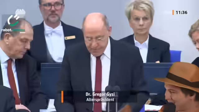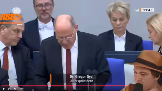 02:29:04Der Antrag der AfD wird von den anderen Fraktionen abgelehnt, die stattdessen an der bewährten Regelung festhalten, dass das dienstälste Mitglied den Vorsitz führt. Gregor Gysi, als dienstältester Abgeordneter, übernimmt die Eröffnung und betont in seiner Rede die Wichtigkeit parlamentarischer Erfahrung für die Wahrung der demokratischen Würde. Er distanziert sich von der Hetze und ruft zu einem respektvollen Umgang mit politischen Gegnern auf, auch wenn er deren Ansichten nicht teilt.