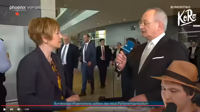 02:08:11Die Kommentatorin blickt auf die Rolle der Bundestagspräsidentin, die als Gesicht des Parlaments und für dessen Atmosphäre verantwortlich ist, und erwähnt Julia Klöckner als designierte Nachfolgerin von Bärbel Bas. Die AfD versucht, mit einem Antrag die Geschäftsordnung zu ändern, um den ältesten anstelle des dienstältesten Abgeordneten als Alterspräsidenten zu bestimmen. Ihr Abgeordneter Dr. Bernd Baumann begründet dies mit angeblichem Wahlbetrug und wirft den etablierten Parteien vor, demokratische Prozesse zu blockieren.