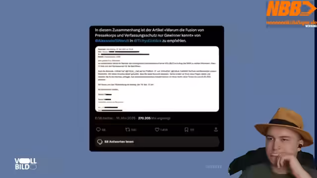 02:12:13Nach einem Auftritt in der Talkshow Maischberger wird der Student Konstantin Saalfeld zur Zielscheibe rechter Hetze. Persönliche Daten wie sein Name, Fotos und sein ehemaliges politisches Engagement als Sprecher der Grünen Jugend werden veröffentlicht. Dies markiert den Wendepunkt einer Hasskampagne, in der er mit massiven Bedrohungen und Beleidigungen konfrontiert wird. Sein Fall zeigt, wie schnell eine einfache Meinungsäußerung zu reale Konsequenzen und existenzielle Ängste führen kann.
