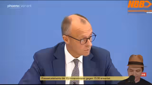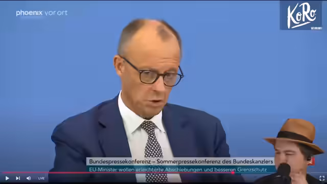01:44:51Der Stream wechselt zur EU, die neue, härtere Sanktionen gegen Russland verhängt hat, um die Waffenexporte zu unterbinden. Im Fokus steht die erste Sommerpressekonferenz von Bundeskanzler Friedrich Merz. Dieser stellt die Prioritäten der neuen Regierung vor: Aus der Rezession führen, durch Investitionen und Reformen die Wettbewerbsfähigkeit Deutschlands steigern und die irreguläre Migration reduzieren. Kritisch hinterfragt wird der Haushalt mit einem hohen Sondervermögen und die nach Einschätzung des Streamers lückenhafte Umsetzung des Sofortprogramms.
