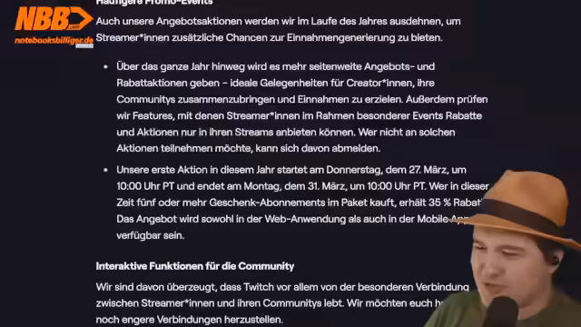 Geplante Rabattaktionen und technische Entwicklungen bei Twitch