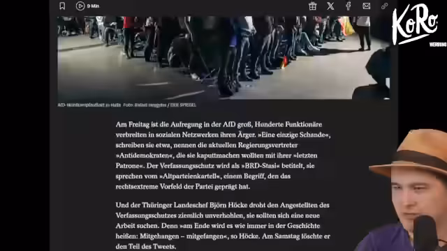01:25:00Der Streamer bespricht die Einstufung der AfD als 'gesichert rechtsextrem' durch den Verfassungsschutz. Er vergleicht dies mit der Historie der Beobachtung von Grünen und Linken, bei denen solche Untersuchungen später wieder aufgehoben wurden. Die AfD sei jedoch in einer eigenen Kategorie, da ihre Demokratiefeindlichkeit ausgeprägt und juristisch relevant sei. Aussagen, die Grünen seien wie die NSDAP, werden als Ragebait und völliger Schwachsinn zurückgewiesen.