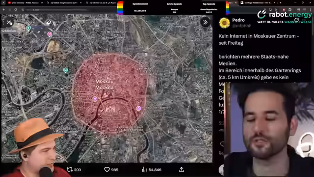 03:16:34Moskau erlebt eine bemerkenswerte Abschaltung von mobilem Internet und Wi-Fi im Zentrum, angeblich aus Sicherheitsgründen, um ukrainische Drohnenangriffe zu verhindern. Diese Maßnahme wird jedoch als absolut sinnlos kritisiert, da moderne ukrainische Drohnen nicht auf das Internet angewiesen sind und ihre Ziele autonom finden. Die Abschaltung hat nicht zu einer Reduzierung der Angriffe geführt und dient primär der进一步加强 der staatlichen Kontrolle über die Bevölkerung.