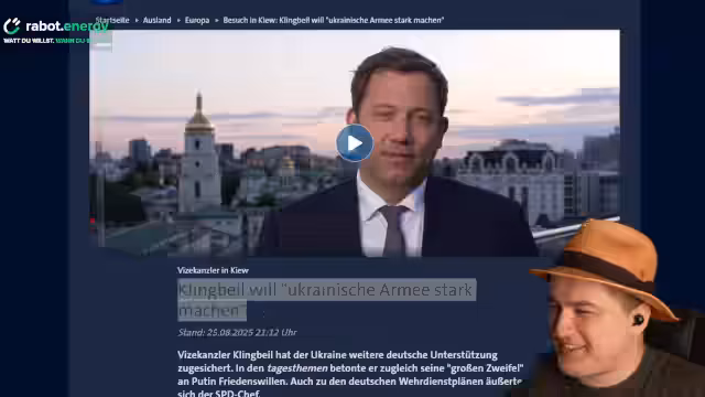 01:14:07Lars Klingbeil äußert große Zweifel, dass Wladimir Putin ernsthafte Friedensgespräche will. Er ist der Meinung, man muss sich darauf vorbereiten, dass der Krieg weitergeht. Die Ukraine habe in den letzten Monaten durch gezielte Angriffe große Schäden in Russland angerichtet, insbesondere bei der Treibstoffversorgung, was die russische Armee schwäche. Klingbeil sieht dies als klares Signal an Putin. Die Ukraine wünscht sich zudem mehr Geld für die Produktion von Drohnen und eine engere Zusammenarbeit deutscher und ukrainischer Unternehmen in der Rüstungsindustrie.