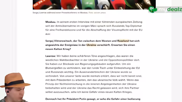 00:48:31Es folgt eine Debatte über pro-russische Positionen des BSW. Der Streamer wehrt sich gegen die Behauptung, die Ukraine solle Gebiete abtreten, um Frieden zu erreichen: Dies sei bereits 2014/15 mit den Minsker Abkommen versucht worden, was 2022 zum vollständigen russischen Angriff führte. 76% der Ukrainer lehnten russische Friedenspläne ab. Der BSW-Vorwurf, die NATO-Osterweiterung sei Kriegsgrund, wird als historisch falsch entlarvt – Lavrov bestätigte 2005 ukrainische Souveränität. Das Argument 'Im Interesse der Arbeiterklasse' wird als zynisch abgelehnt, da es ukrainische Selbstbestimmung ignoriert. Abschließend wird der Drohnenangriff auf Tschernobyl erwähnt, der Radioaktivität freisetzen könnte.
