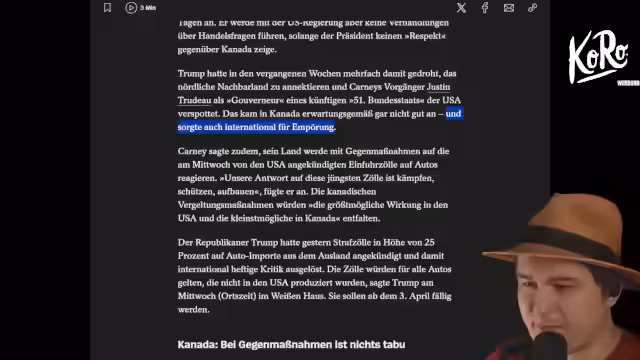 01:44:32Carney kündigte an, auf die US-Zölle mit Gegenmaßnahmen zu reagieren, die die größte Wirkung in den USA und die geringste in Kanada entfalten sollen. Diese könnten Aufstiege bei Exporten wie Öl oder Potasche umfassen. Gleichzeitig kündigte er ein Gespräch mit Trump an, solange dieser kein Respekt zeigt.