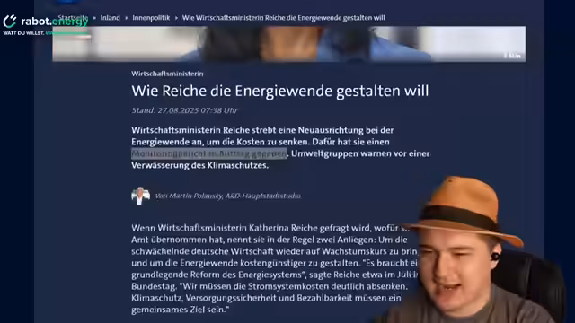 00:28:31Es wird der Monitoring-Bericht zur Energiewende erwähnt und die darin enthaltenen Vorschläge zur Kostenreduzierung analysiert. Der Streamer kritisiert, dass Katharina Reiche in der Vergangenheit die Photovoltaik-Thematik ausgebremst hatte. Zudem wird der Streit um den Transformationsfonds und die mögliche Verwendung von CO2-Zertifikaten-Darlehen für Strafzahlungen thematisiert.