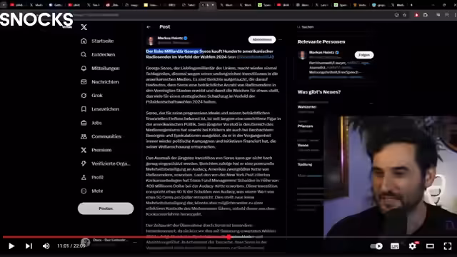 02:29:27Der Streamer befasst sich mit Markus Heinz, der antisemitische Inhalte im Sinne von Verschwörungserzählungen teilt. Besonders kritisiert er die wiederholte Verwendung von George Soros als Platzhalter für jüdische Weltverschwörungen, was er als weit hergeholt und ohne jegliche Grundlage bezeichnet. Er weist darauf hin, dass solche Äußerungen zwar peinlich, aber nicht illegal sind und dass Meinungsfreiheit auch solche Inhalte schützt.