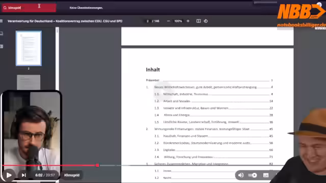 01:15:14Eine Analyse des Interviews von Friedrich Merz beleuchtet dessen Pläne für den Klimaschutz, die auf dem CO2-Emissionshandel basieren. Merz gesteht ein, dass Tanken und Heizen dadurch teurer werden soll. Er verspricht jedoch Entlastungen, unter anderem durch ein sogenanntes Klimageld. Kommentator Maurice Höfken wirft Merz jedoch vor, bezüglich des Klimagelds zu lügen, da dieses im aktuellen Koalitionsvertrag nicht verankert ist und Merz die Umstellung erst in Aussicht stellt, wenn die Preise bereits gestiegen sind, was als zu spät kritisiert wird.