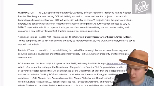 00:43:53Der Streamer hebt hervor, dass die USA aufgrund von Trumps Drosselung von Solar- und Windenergie einen massiven Anstieg der Strompreise erwarten. Trump fördert stattdessen Kernkraft, doch die Prognosen für den Ausbau sind niedrig. Das Energieministerium plant den Bau von 9 Gigawatt Kernkraft bis 2035. Der Streamer zweifelt an der Realisierbarkeit dieser Pläne und vergleicht die Prognosen mit bisherigen Fehleinschätzungen von Regierungsbehörden.