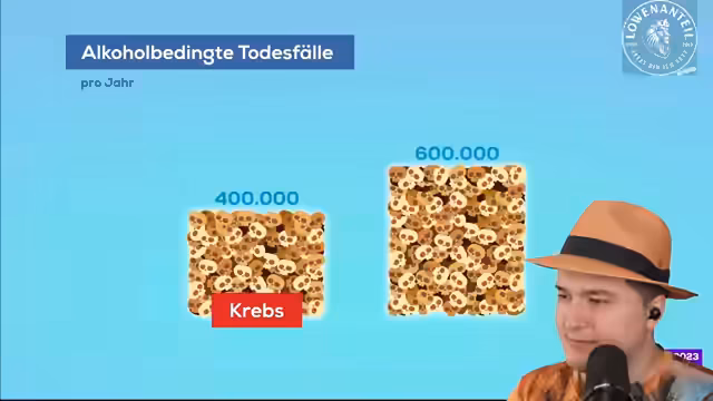 02:22:19In einem abschließenden Segment wird die ambivalente Rolle von Alkohol in der Gesellschaft analysiert. Zwar wird er als biologische Waffe bezeichnet, die über zwei Milliarden Menschen konsumieren, dient er auch als soziales Schmiermittel, das Hemmungen abbaut und soziale Bindungen stärkt. Alkohol führt zu einer Überflutung des Gehirns, betäubt Neuronen, reduziert Stress und löst Wohlfühlhormone aus. Gleichzeitig verursacht er mehr Todesfälle als Terror, Kriege und Unfälle zusammen und stellt ein erhebliches gesundheitliches und gesellschaftliches Problem dar.
