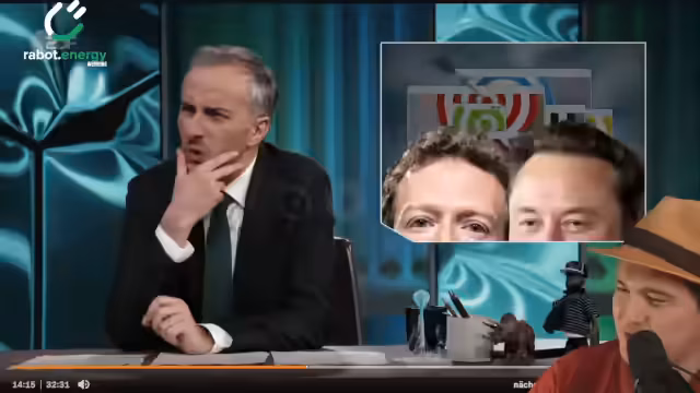 05:29:46Böhmermann kritisiert, dass Elon Musk die AfD auf der Plattform X nach vorn katapultiert und fragt, wann Unterstützung zu Manipulation wird. Er betont, dass es sich um Wahlmanipulation aus dem Ausland gegen unsere Interessen handelt. Er kritisiert, dass Tech-Milliardäre in den USA und China entscheiden, wie wir zu unseren Entscheidungen kommen. Er fragt das Publikum, wer nach der Sendung Lust auf Geschlechtsverkehr hat und entschuldigt sich bei Dr. Simon Kruschinski für die sexualisierte Sendung. Böhmermann kündigt ein Gespräch mit Dr. Simon Kruschinski von der Universität Mainz zum Thema Wahlkampf im Internet an, das in der ZDF-Mediathek und im YouTube-Channel vom ZDF-Magazin Royale zu finden ist. Er beschreibt das Gespräch als "cringe-pomadig".