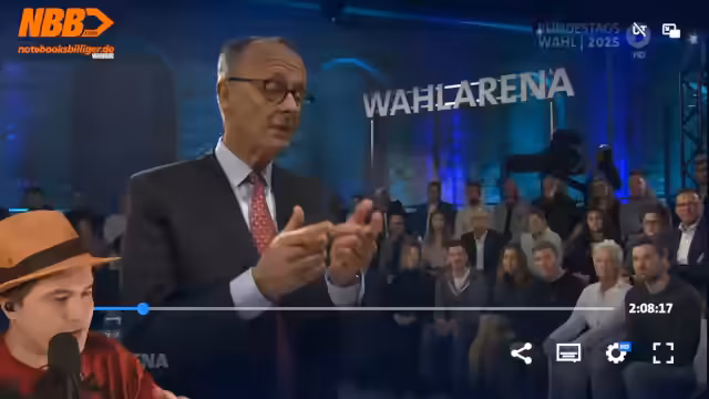 03:14:35Der Streamer kommentiert die Wahlarena als wichtige Plattform für politische Debatten und drückt die Hoffnung aus, dass solche Formate öfter stattfinden. Er verweist auf die aktuell unwahrscheinliche Möglichkeit, dass CDU/CSU und SPD gemeinsam regieren könnten, und stellt die Frage, welchen Ministerposten Friedrich Merz Olaf Scholz in einer solchen Konstellation anbieten würde. Die Atmosphäre wird als angespannt beschrieben, mit gegenseitigen Vorwürfen und unterschiedlichen Positionen zur Bildungspolitik.