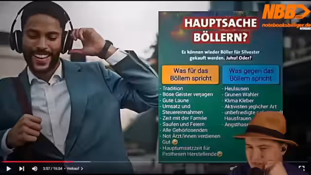 04:28:48Der Streamer spricht über die von ihm als "idiotisch" empfundene Tradition des Feuwerksens an Silvester und hebt die damit verbundenen Gefahren hervor. Er berichtet von seinen Erfahrungen als Feuerwehrmann während des Jahreswechsels, wobei er von zahlreichen Einsätzen erzählt, darunter auch bei Brandstiftungen und袭击 auf Einsatzkräfte. Die von ihm geforderte strengere Regulierung oder ein Verbot von Feuerwerk wird als notwendige Maßnahme zur Vermeidung von Schäden und Respektlosigkeit dargestellt.