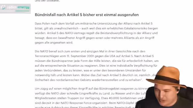 02:56:18Es wird bedauert, dass ein bestimmter Beitrag zum Thema Datenzentren nicht gefunden wurde. Auf die Frage nach Artikel 4 der NATO wird erklärt, dass dies lediglich bedeutet, dass man sich trifft und über die Situation spricht. Es wird ironisch auf Behauptungen eingegangen, der Streamer sei NATO-Generalsekretär, Kampfjetpilot und Waffenaktionär. Auf die Frage nach einem Fahrplan für die Installation einer PV-Anlage wird geantwortet, dass es dazu noch kein Video gibt, aber überlegt wird, einen Beitrag für die Quellenliste zu erstellen. Es wird auf die geplante Quellenliste in Druckform hingewiesen. Es wird ironisch auf Kommentare reagiert, der Streamer habe selbst eine Drohne abgeschossen und sei Kampfjetpilot. Es wird festgestellt, dass es nicht unvorstellbar sei, dass solche Aussagen ernst genommen würden. Es wird auf ein anderes Video verwiesen und erwähnt, dass SpiegelTV sich über Jens Spahn lustig gemacht hat. Es wird eine Anekdote über ein Missverständnis bei Hand of Blood erzählt, wo einige Leute dachten, der Streamer bezahle seine Cutter nicht, obwohl dies als Witz gemeint war. Es wird angekündigt, dass am Wochenende ein Aufruf für einen Reaktionkanal auf YouTube gestartet wird, der möglicherweise auch Offline-Updates enthalten soll. Es wird ironisch auf einen Kommentar reagiert, der Streamer sei erkannt worden. Es wird gesagt, dass mit Wärme nur für Geld gearbeitet werden würde und jemand für die Emotes gesucht wird, der erfahren und gut im Zeichnen ist. Es wird sich über die positiven Rückmeldungen zu den Handelsballartikeln gefreut und Nachschub in Aussicht gestellt. Verschiedene Panzi-Mods werden kommentiert. Es wird erwähnt, dass es bald wieder Nachschub geben wird.